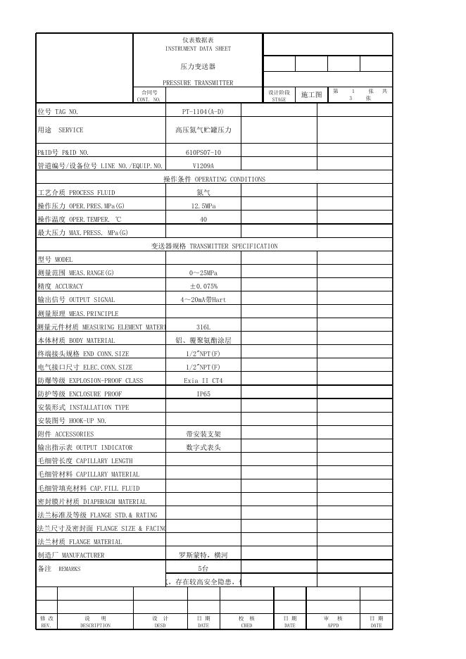 附件3:压力变送器PT-1104(A-D)数据表罗斯蒙特横河.xls