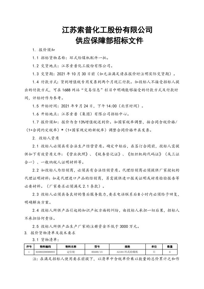 环式给煤机配件一批招标文件.doc