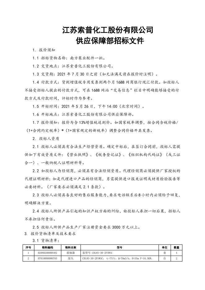 南方泵业配件一批招标文件.doc