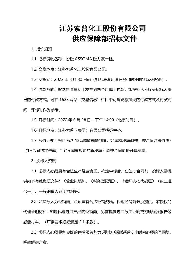 协磁磁力泵一批招标文件.doc