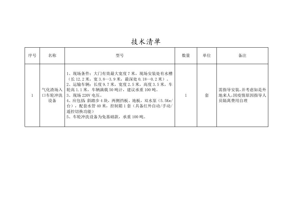 附件3:气化渣场入口车轮冲洗设备技术清单.doc