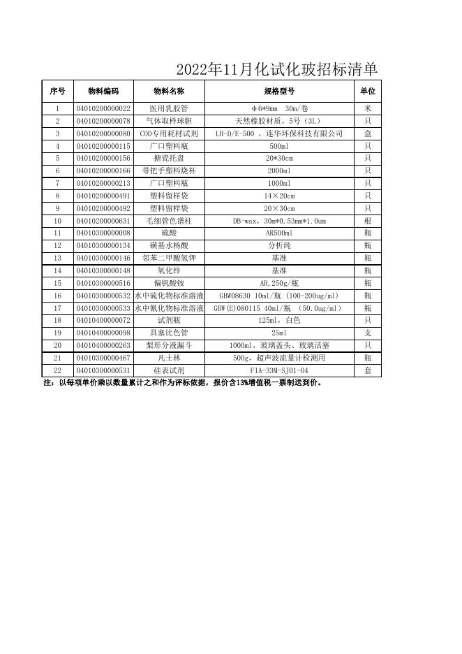 2022年11月化试化玻招标清单.xls