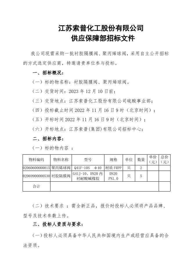 衬胶隔膜阀、聚丙烯球阀招标文件.doc