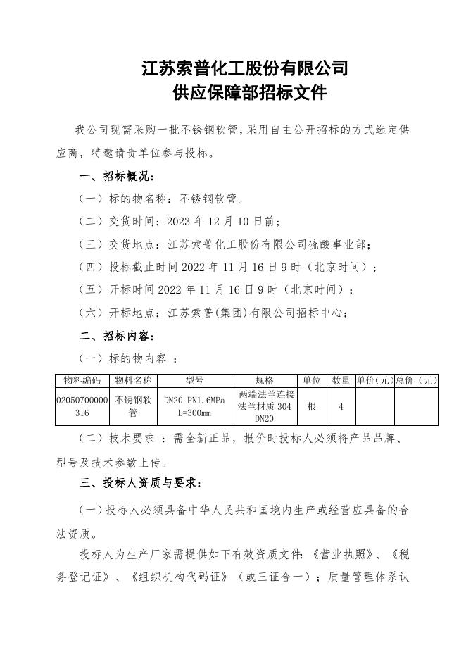不锈钢软管招标文件.doc