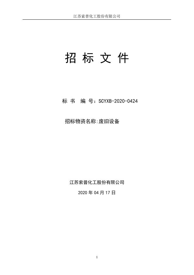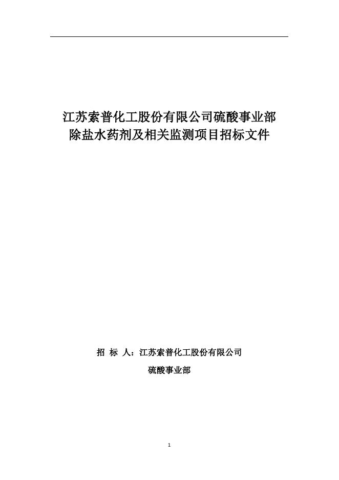 2020年索普化工硫酸事业部除盐水项目招标文件.docx