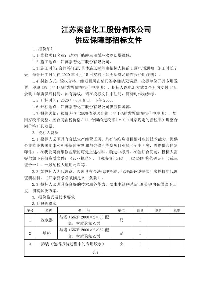 动力厂醋酸三期循环水冷却塔维修招标文件4.8.doc