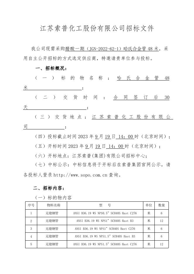 醋酸一期哈氏合金管招标文件 (1).doc