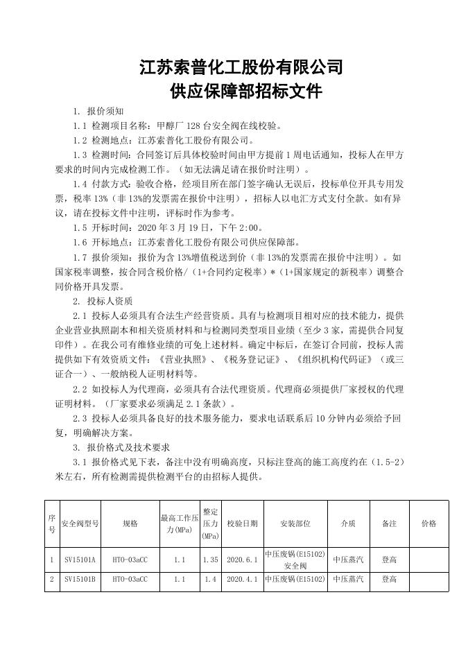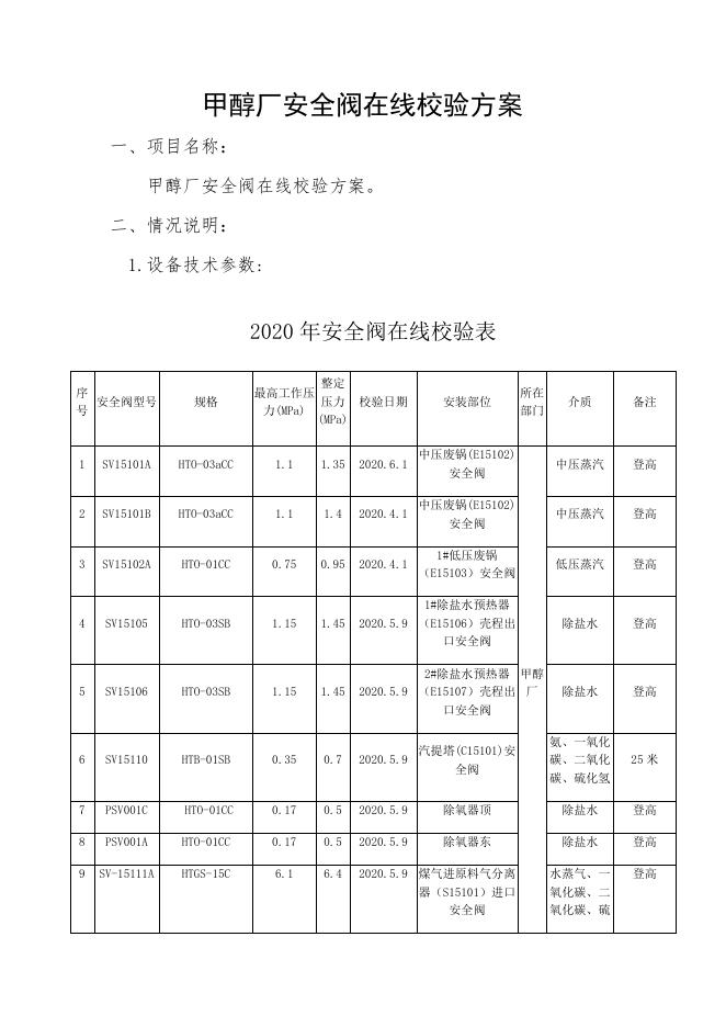甲醇厂安全阀在线校验招标文件3.19.doc