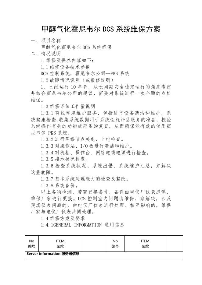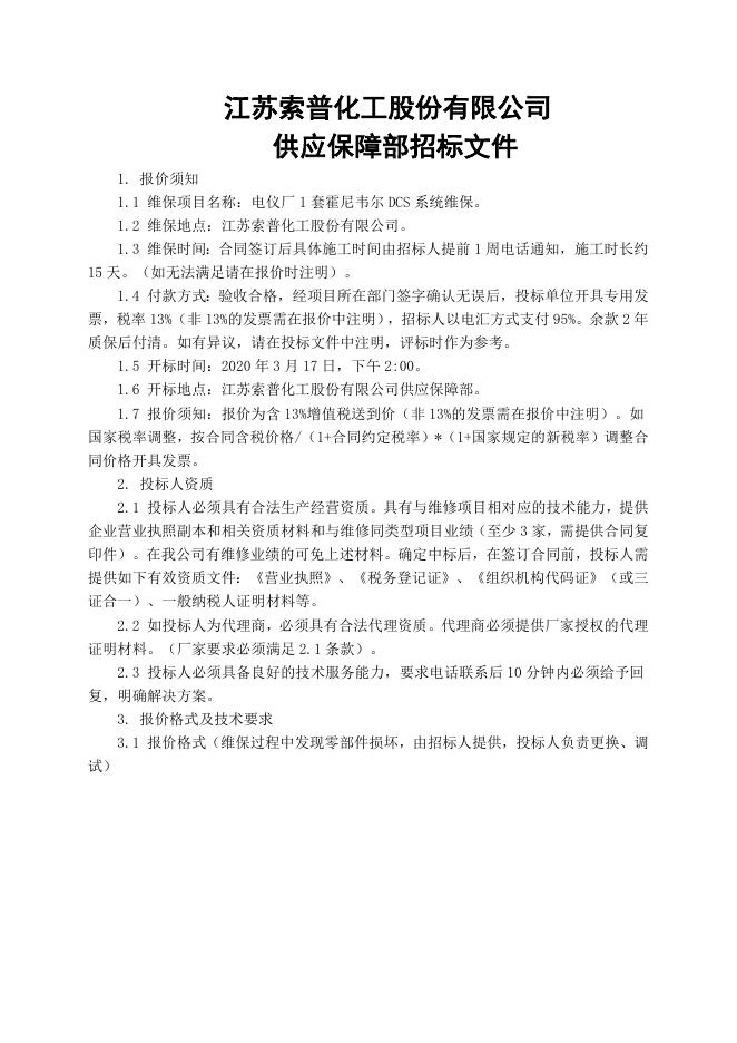 电仪厂1套霍尼韦尔DCS系统维保招标文件3.17.doc