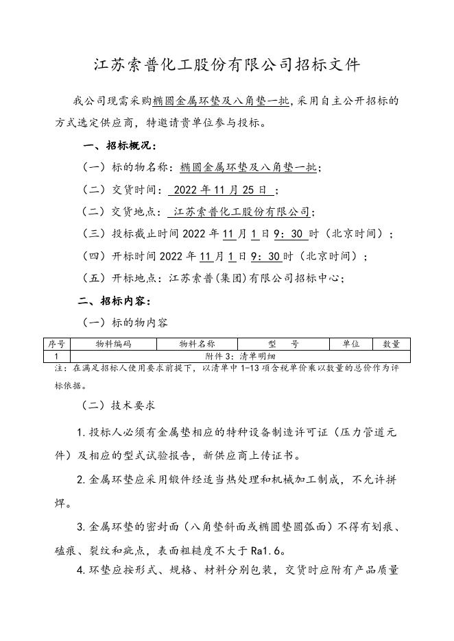 椭圆金属环垫及八角垫招标文件-2022.10.20.doc