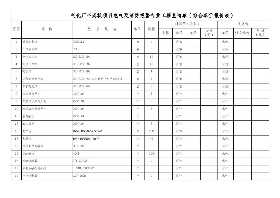 附件6:板框带滤机电气与消防专业工程量清单(综合单价报价表).xlsx