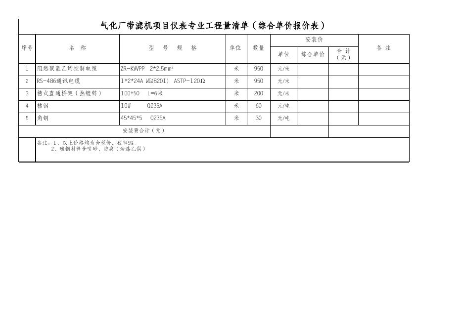 附件7:板框带滤机仪表专业工程量清单(综合单价报价表).xlsx