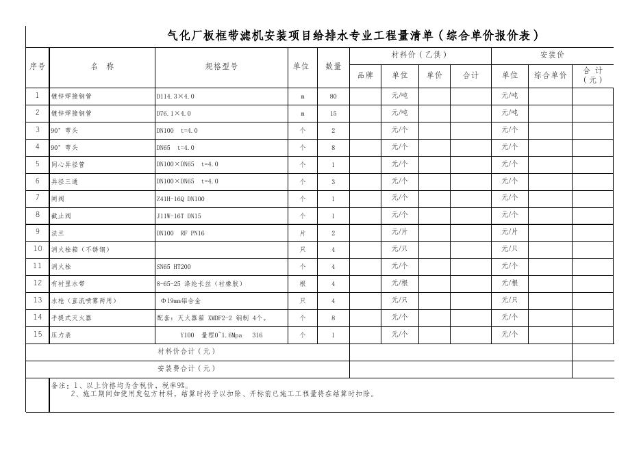 附件4:板框带滤机管道安装工程量清单(综合单价报价表).xlsx