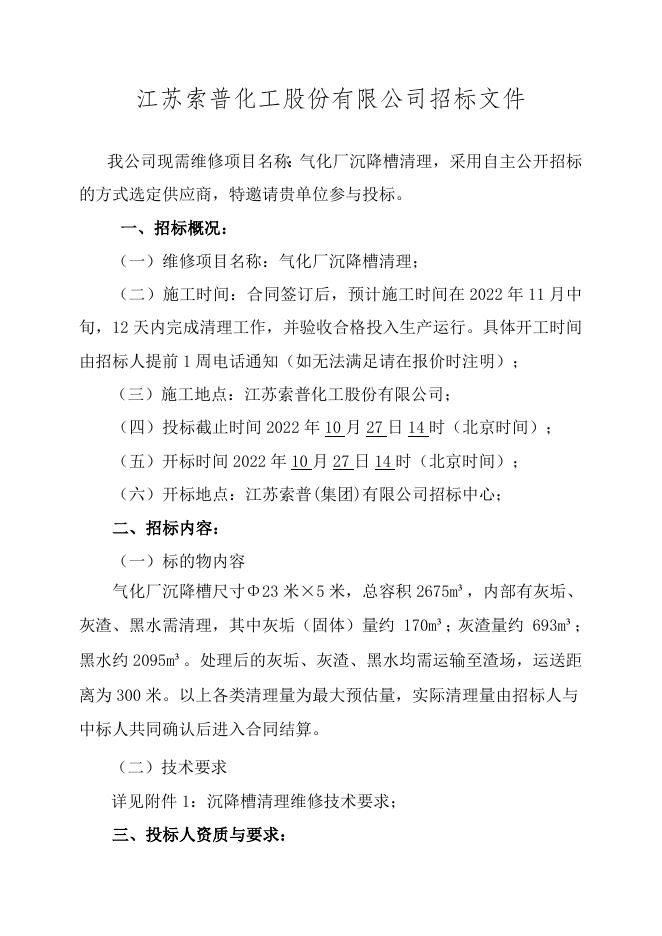 气化厂沉降槽清理自主公开招标招标文件-股份2022.10.27(1).doc