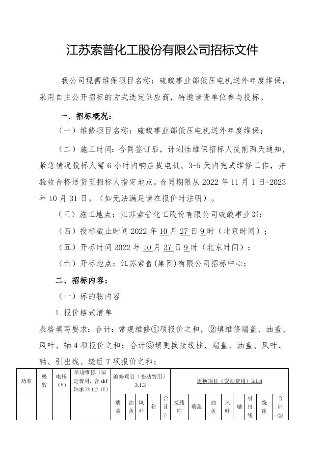 硫酸事业部低压电机送外年度维保招标文件.doc