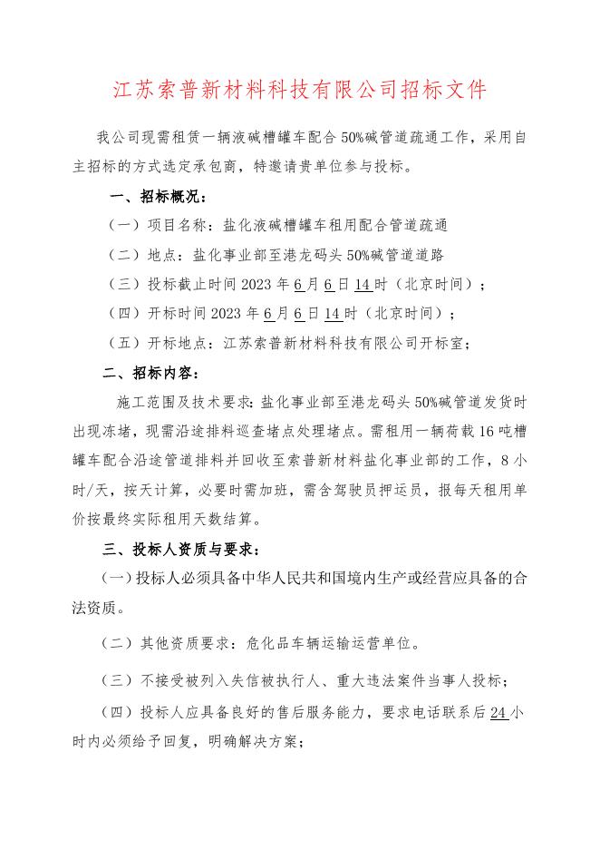 盐化液碱槽罐车租用配合管道疏通招标文件(加急).doc