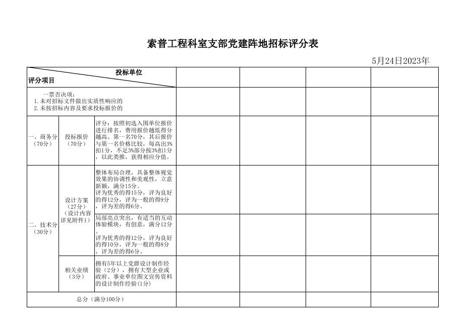 附件2:索普工程科室支部党建阵地标书评分表.xlsx