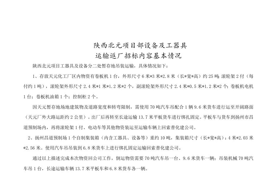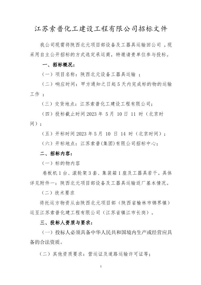 陕西北元设备工器具运输自主公开招标文件(李军2023.4.18).doc