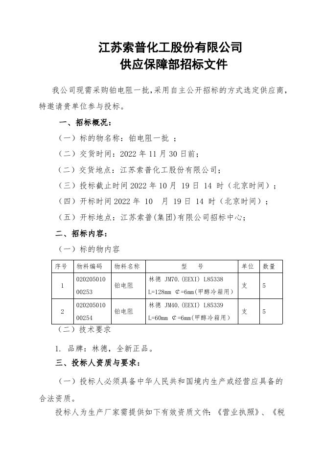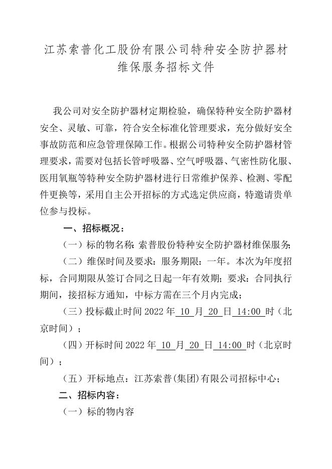 江苏索普化工股份有限公司特种安全防护器材维保服务招标文件.doc