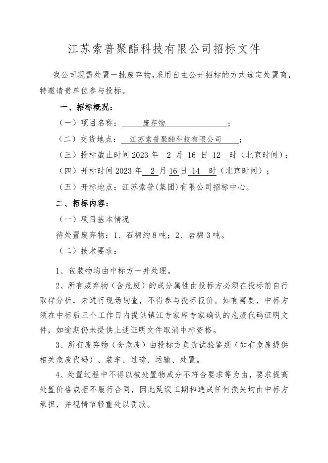 危废处置自主公开招标招标文件(石棉+岩棉).doc