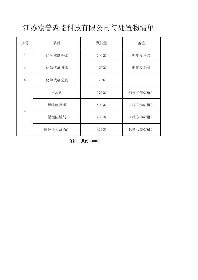 江苏索普聚酯科技有限公司待处置物清单.xlsx