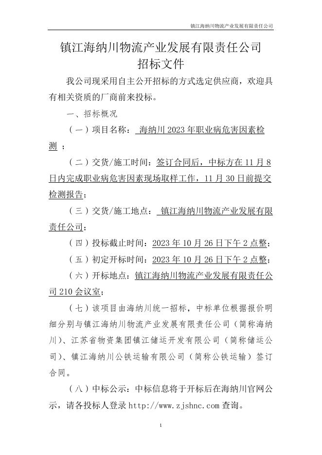 海纳川2023年职业危害因素检测招标文件2023.10.18docx.docx