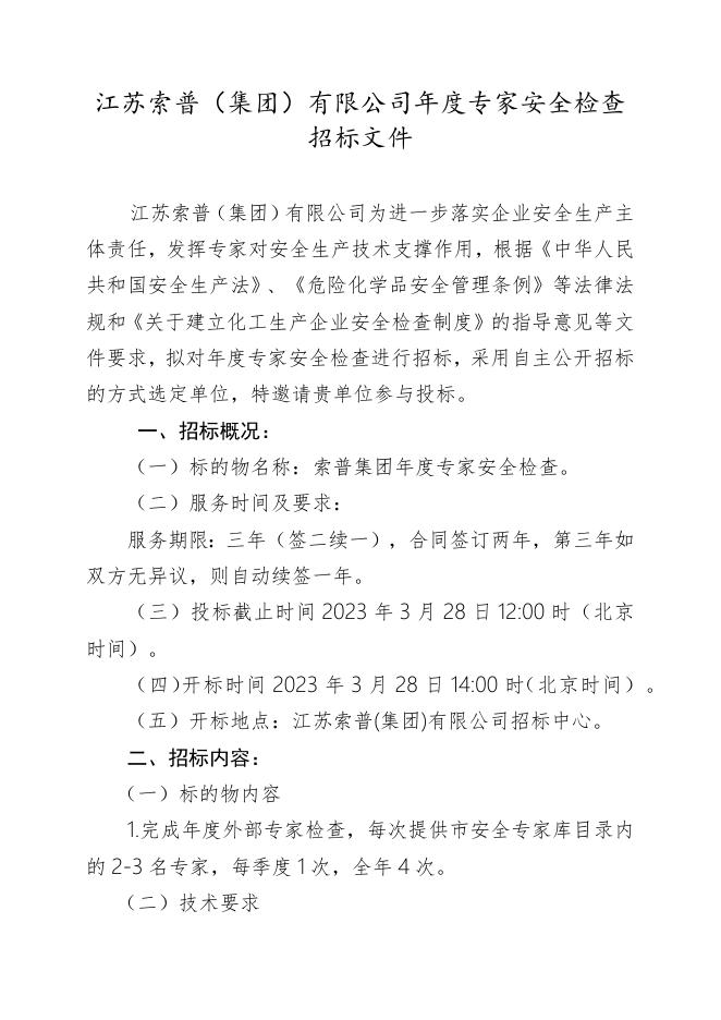 江苏索普(集团)有限公司年度专家安全检查招标文件.docx