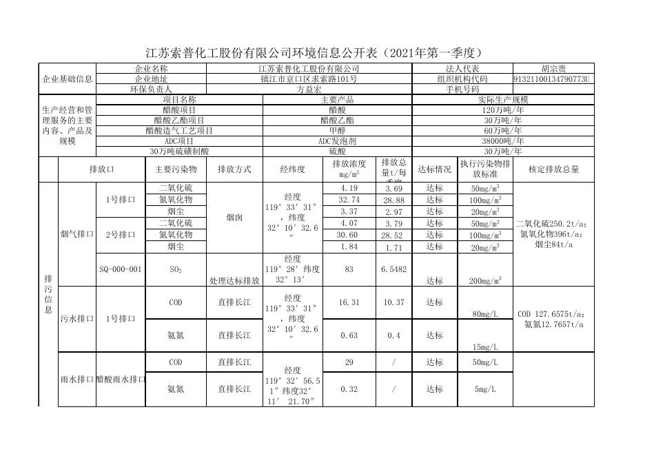 江苏索普化工股份有限公司第一季度环境信息公开表(2021).xlsx