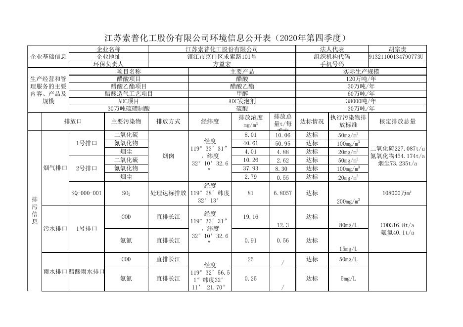 江苏索普化工股份有限公司第四季度环境信息公开表(2020).xlsx