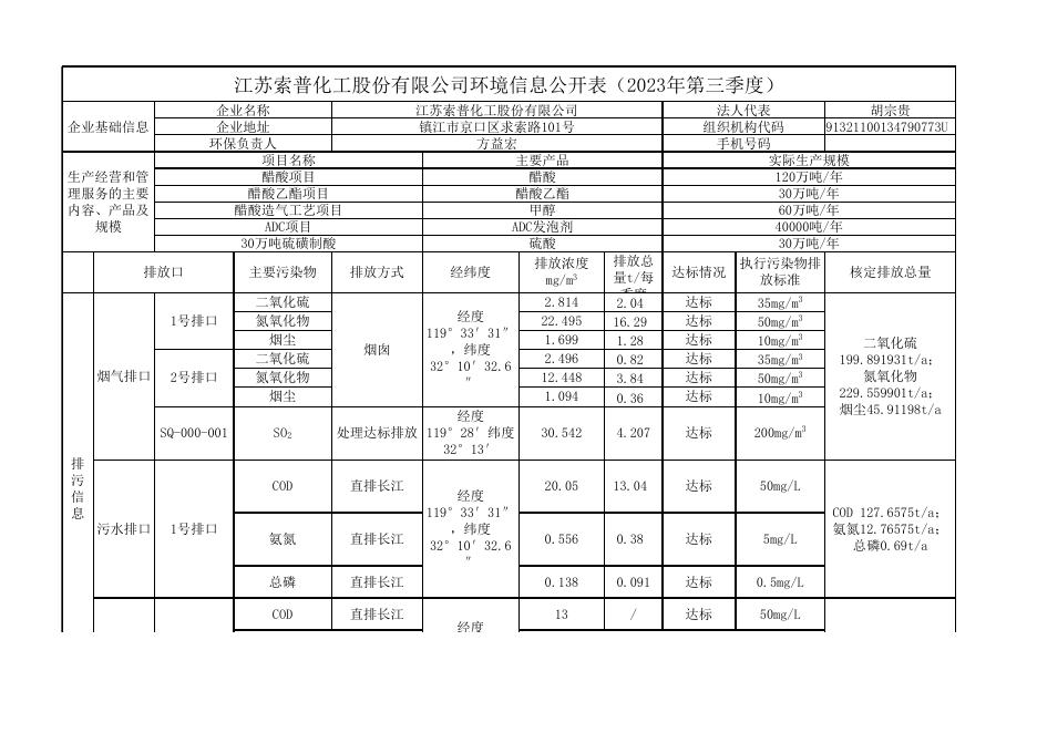 江苏索普化工股份有限公司第三季度环境信息公开表(2023).xlsx