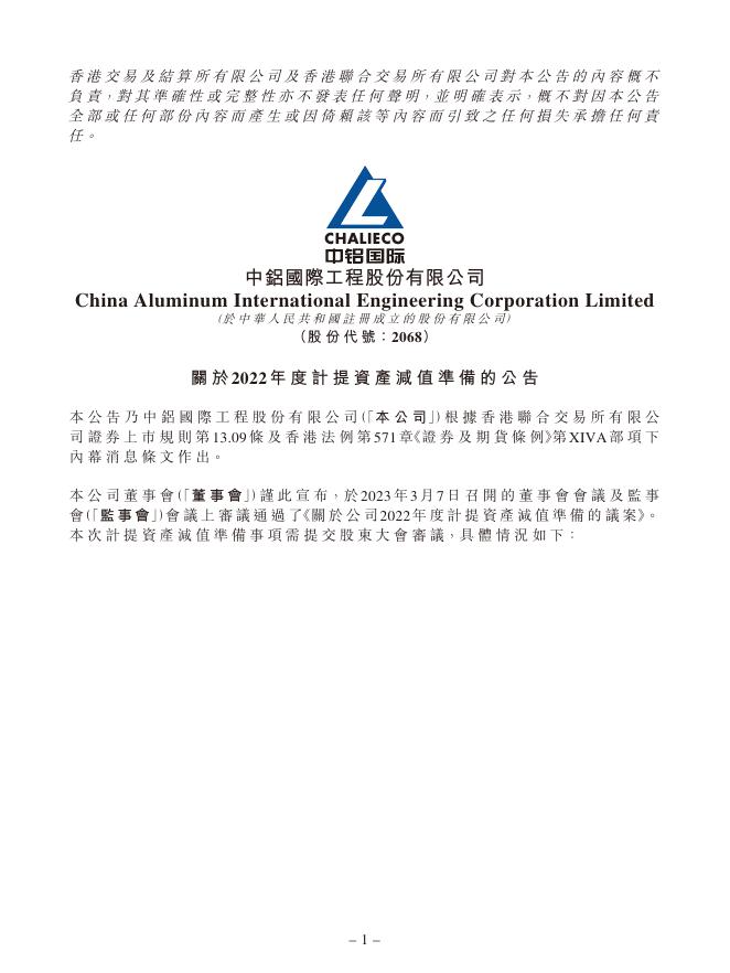 2.中鋁國際工程股份有限公司 關於2022年度計提資產減值準備的公告.pdf