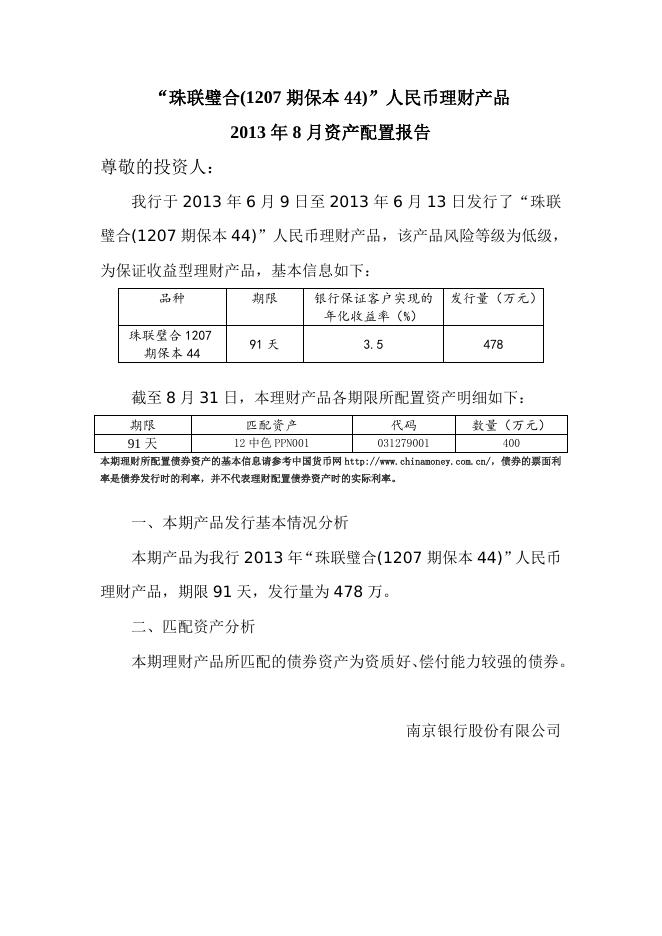 点击下载“珠联璧合(1207期保本44)”人民币理财产品2013年8月资产配置报告.doc