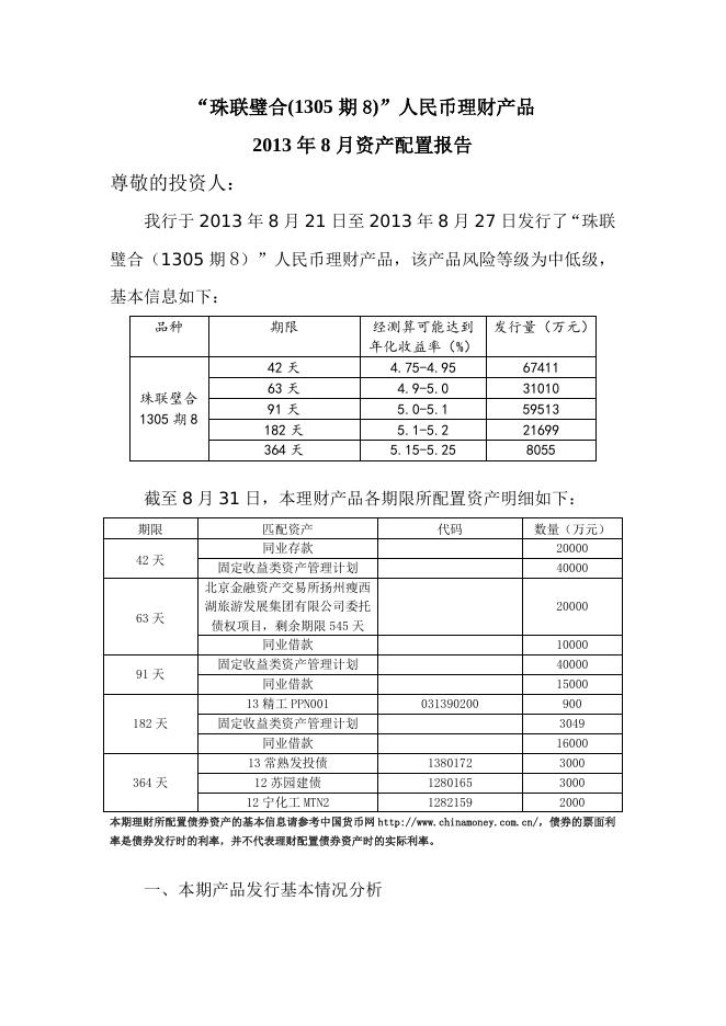 点击下载“珠联璧合(1305期8)”人民币理财产品2013年8月资产配置报告.doc
