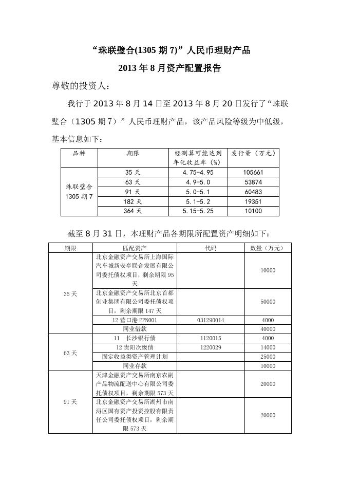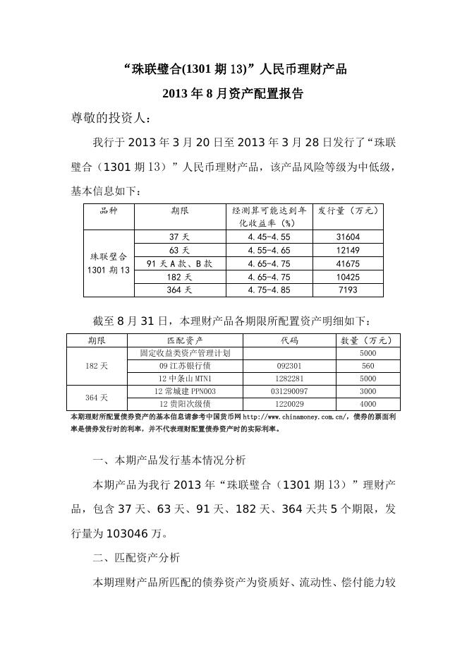 点击下载“珠联璧合(1305期7)”人民币理财产品2013年8月资产配置报告.doc