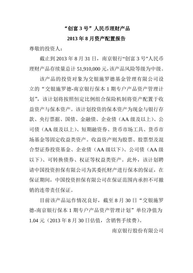 点击下载“创富3号”人民币理财产品2013年8月资产配置报告.doc