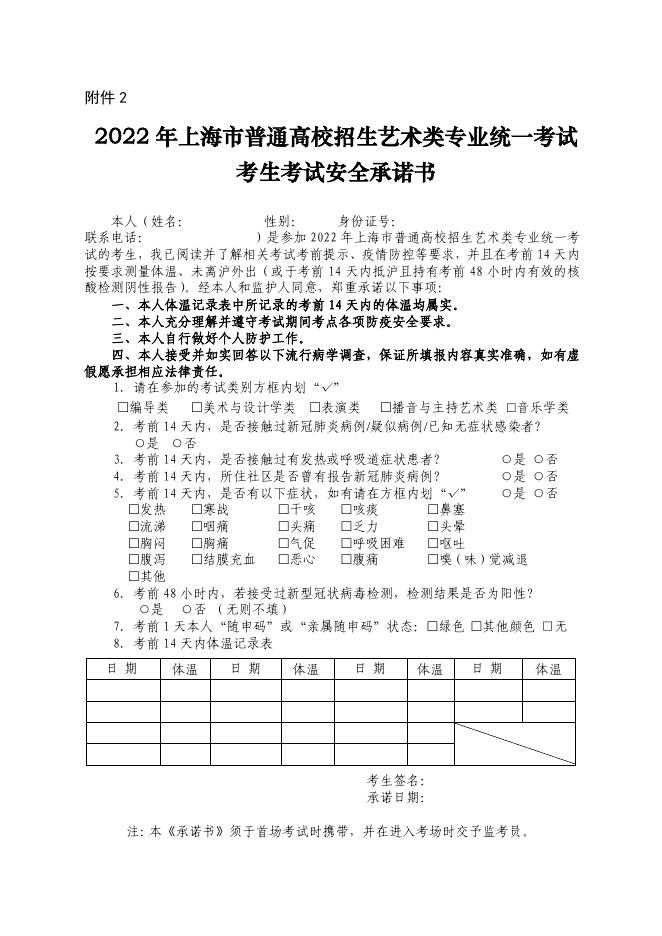 2022年上海市普通高校招生艺术类专业统一考试考生考试安全承诺书.pdf