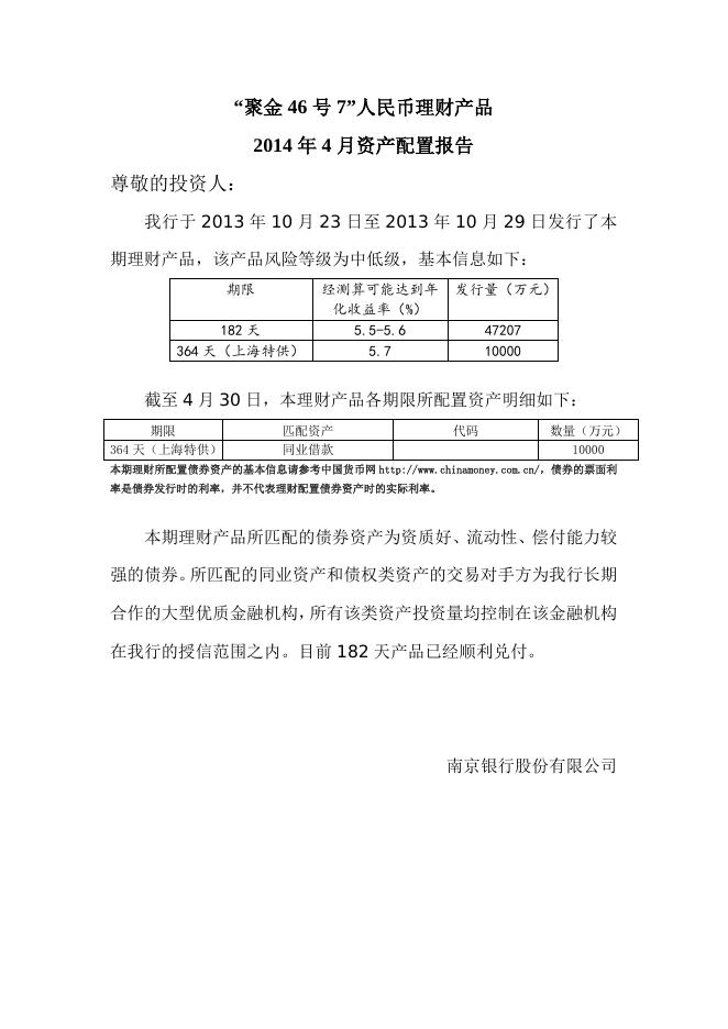 “聚金46号7”人民币理财产品2014年4月资产配置报告.doc