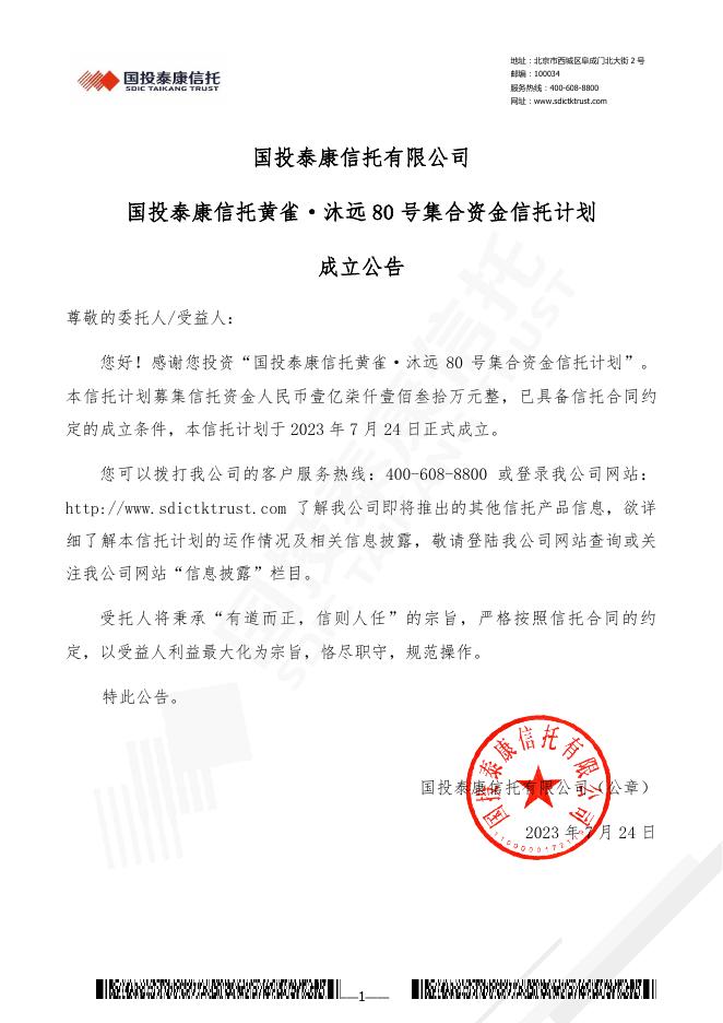 国投泰康信托黄雀·沐远80号集合资金信托计划成立公告.pdf
