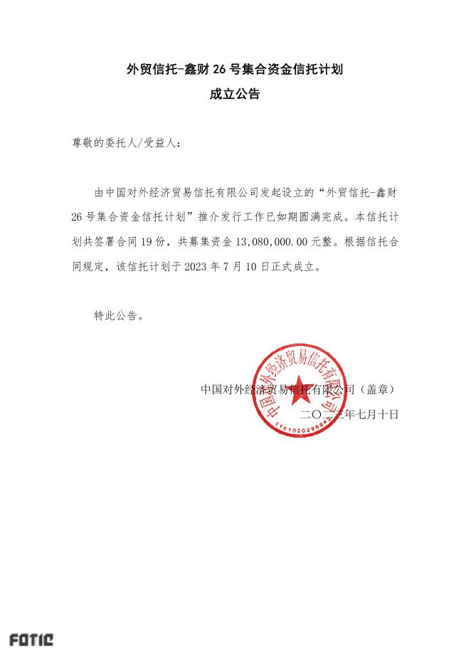 外贸信托-鑫财26号集合资金信托计划成立公告.pdf