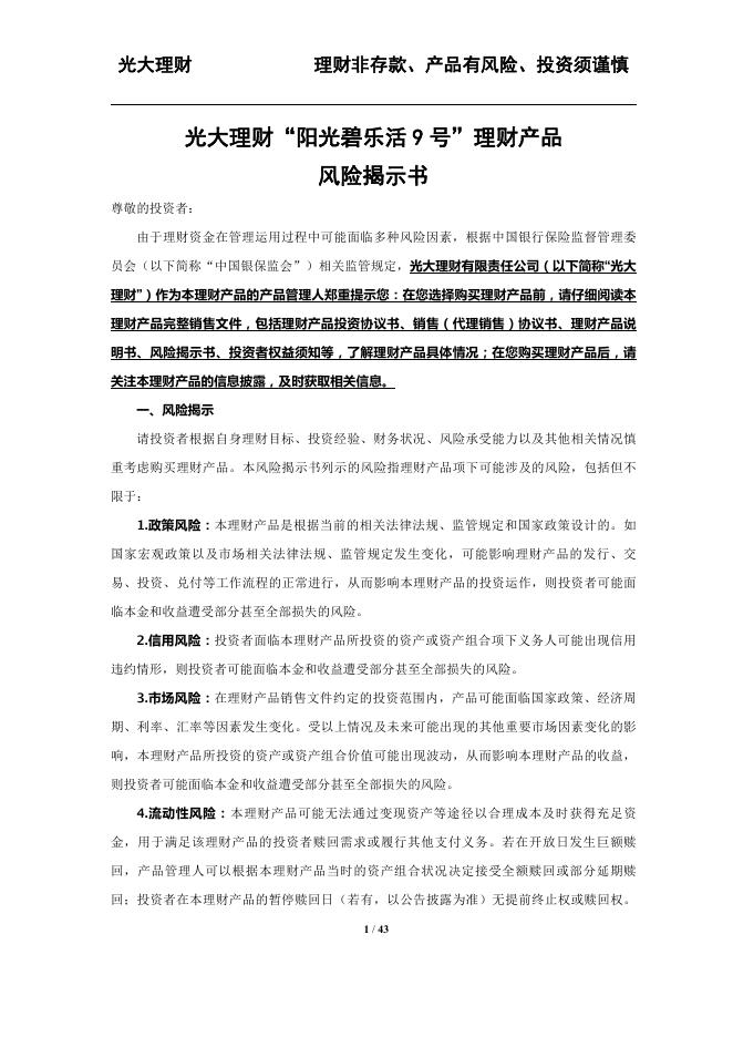 光大理财阳光碧乐活9号理财产品说明书、风险揭示书、投资者权益须知、投资协议书(20230629).pdf