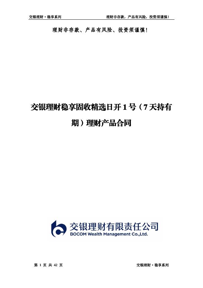 交银理财稳享固收精选日开1号(7天持有期)理财产品合同.pdf
