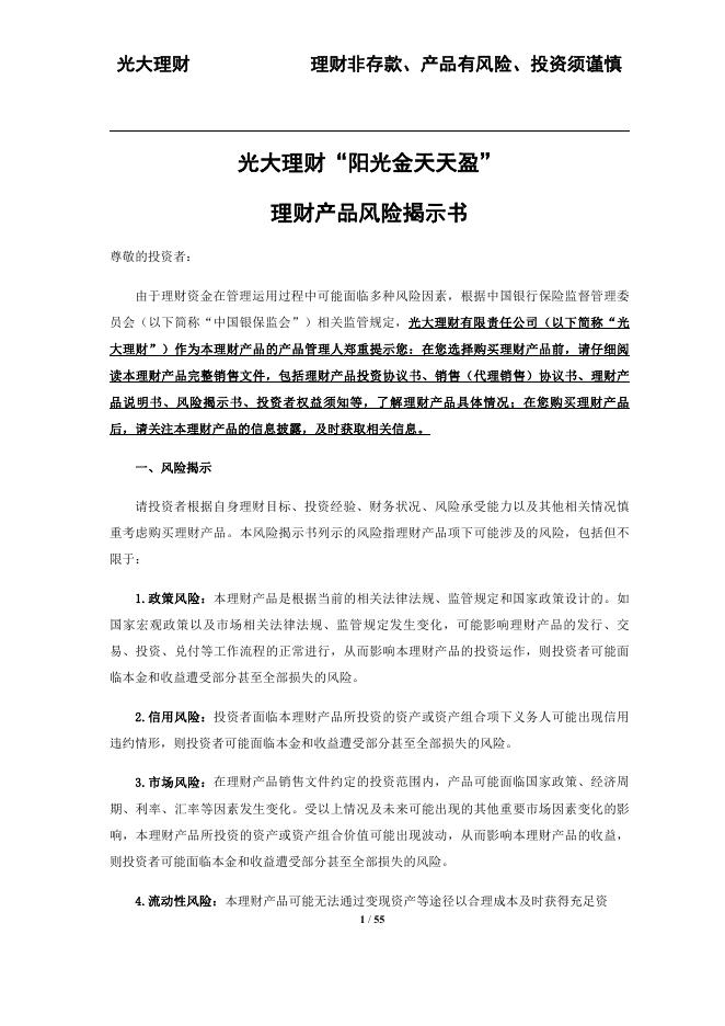 光大理财“阳光金天天盈”产品说明书、风险揭示书、投资者权益须知、投资协议书(20230821).pdf