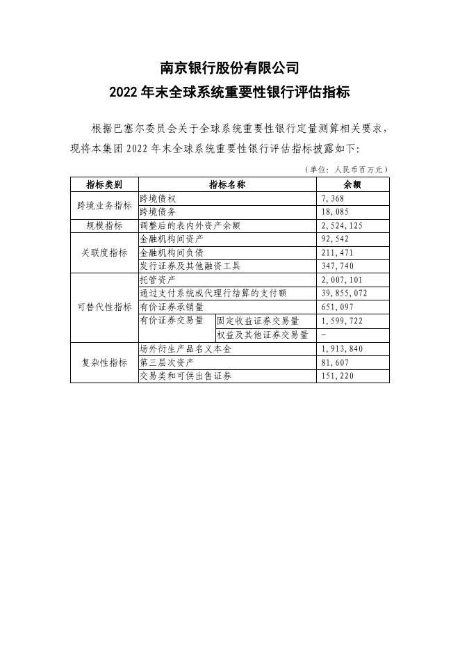 南京银行股份有限公司2022年末全球系统重要性银行评估指标.pdf