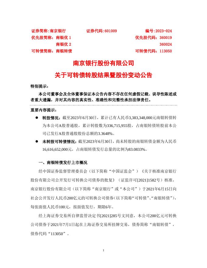 南京银行股份有限公司关于可转债转股结果暨股份变动公告.pdf