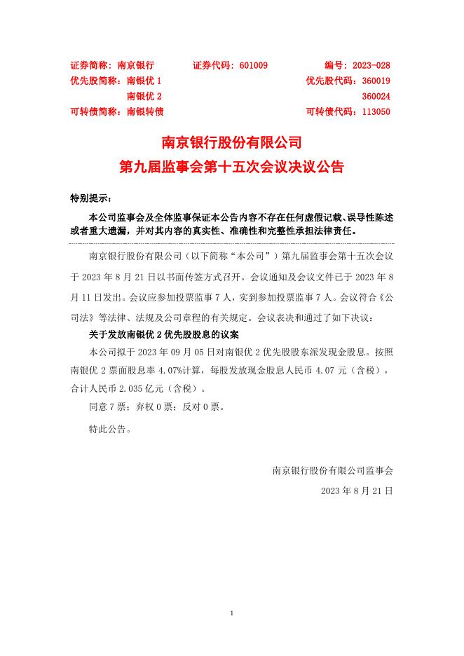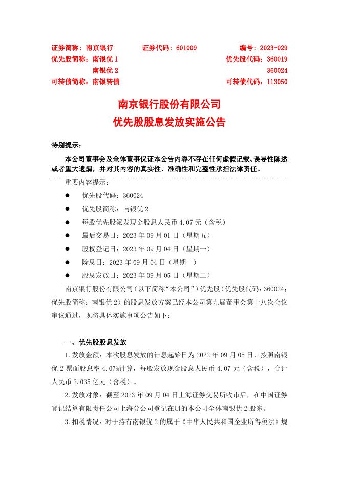 南京银行股份有限公司优先股股息发放实施公告.pdf