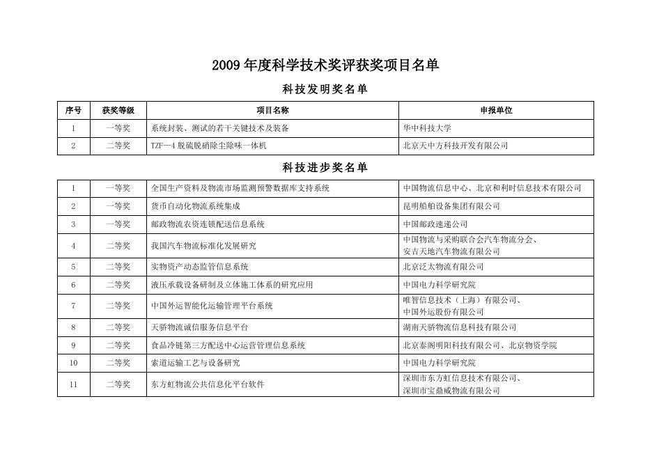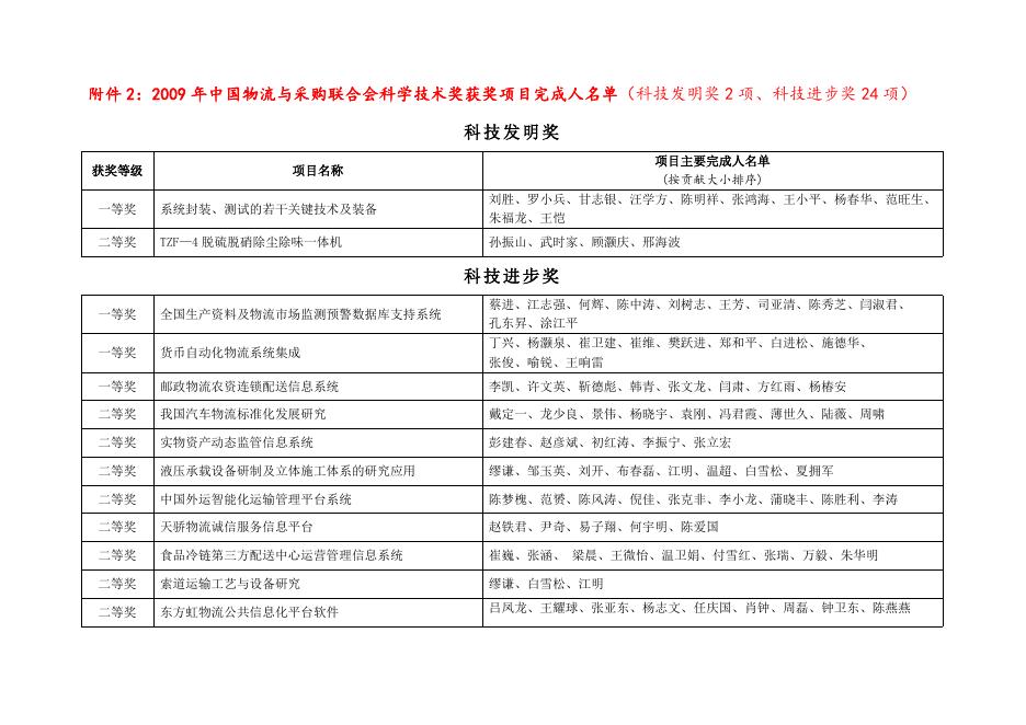 2009年度中国物流与采购联合会科学技术奖获奖名单.doc