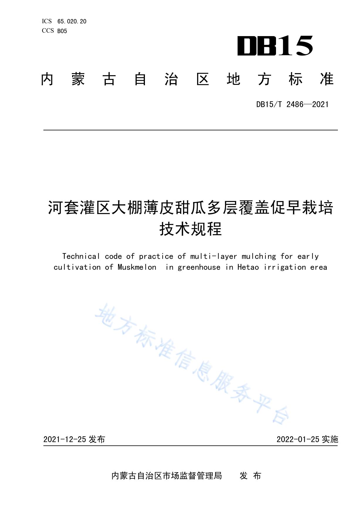 河套灌区大棚薄皮甜瓜多层覆盖促早栽培技术规程