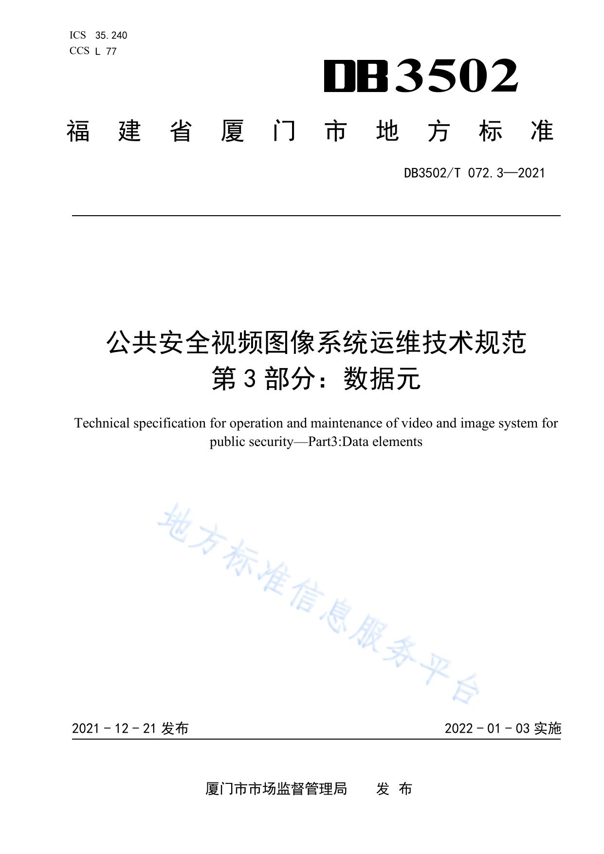 公共安全视频图像系统运维技术规范 第3部分:数据元