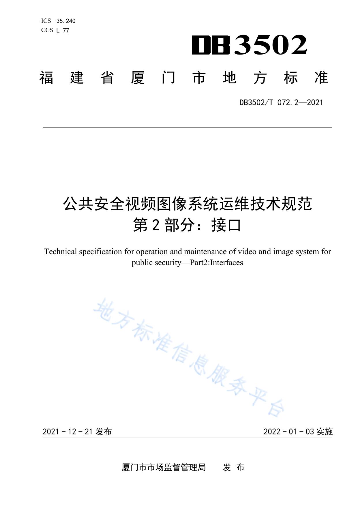 公共安全视频图像系统运维技术规范 第2部分:接口