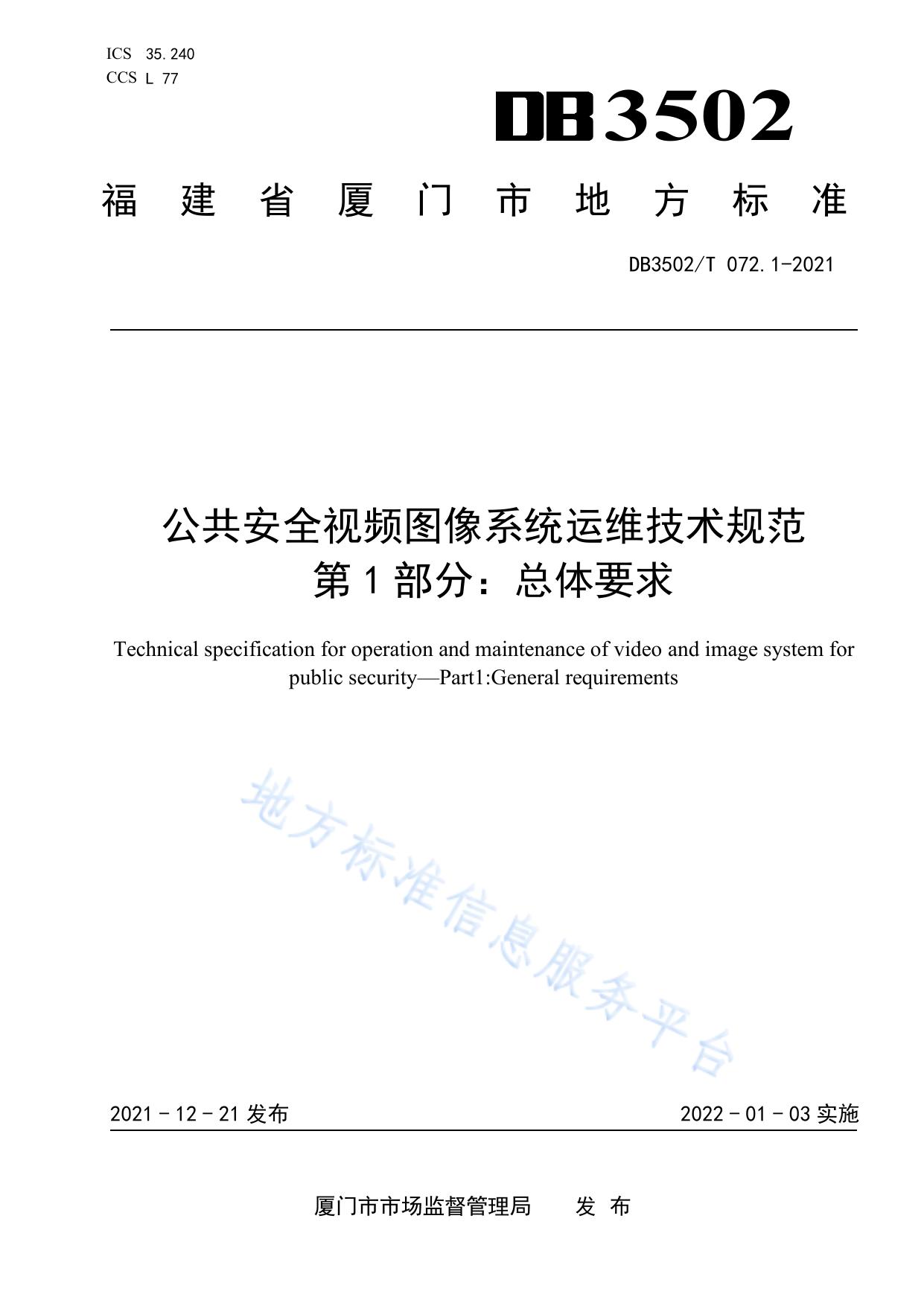 公共安全视频图像系统运维技术规范 第1部分:总体要求